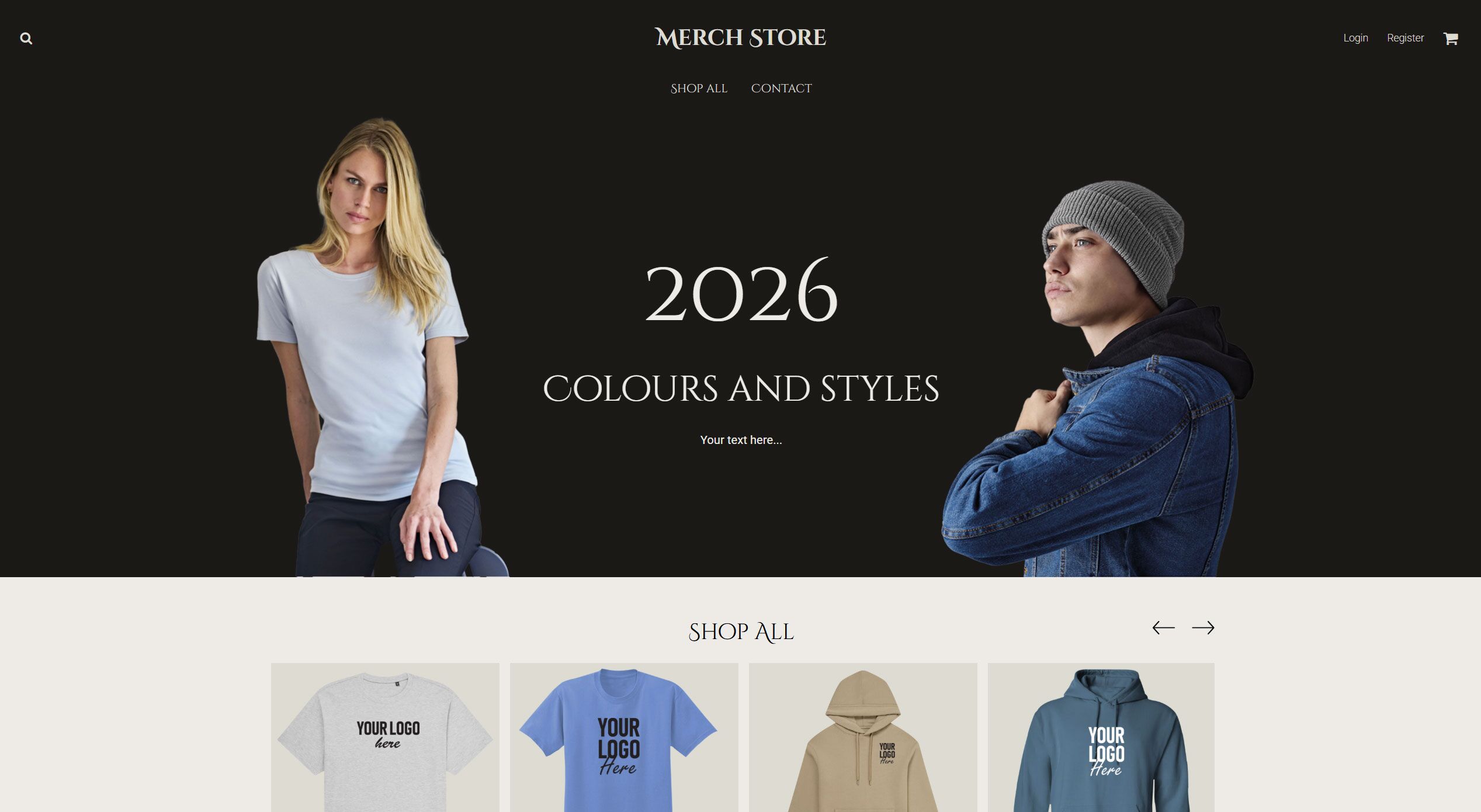 Select the MERCH store if you want to sell garments with your own designs or logo.