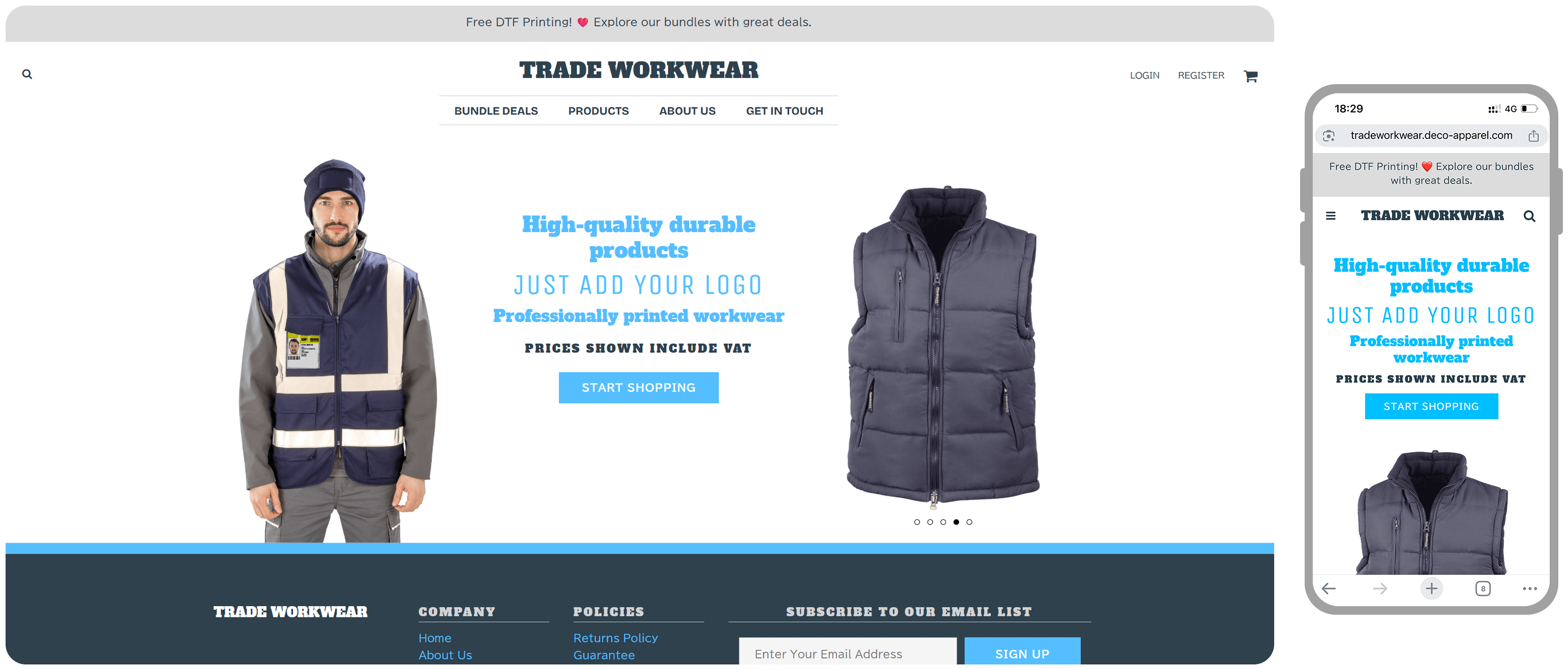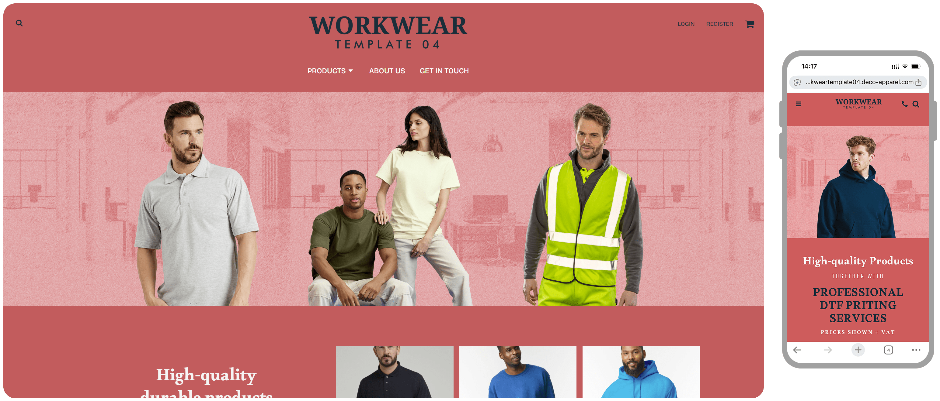 We provide ready-made store templates filled with top-selling workwear, so you can start selling immediately. Choose the template that best fits your business - the prices shown reflect our costs, including printing and tax. Simply set your own markup to start earning!